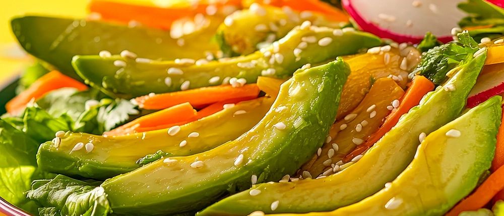 A fresh burst of colour to whet the appetite! Bright radishes, crunchy cucumbers and tender avocados harmonise perfectly in this colourful salad combination. The vibrant shades of green and the golden background colour lend the presentation an inviting warmth that is ideal for the kitchen or dining area - a real eye-catcher that awakens the anticipation of healthy delights!
