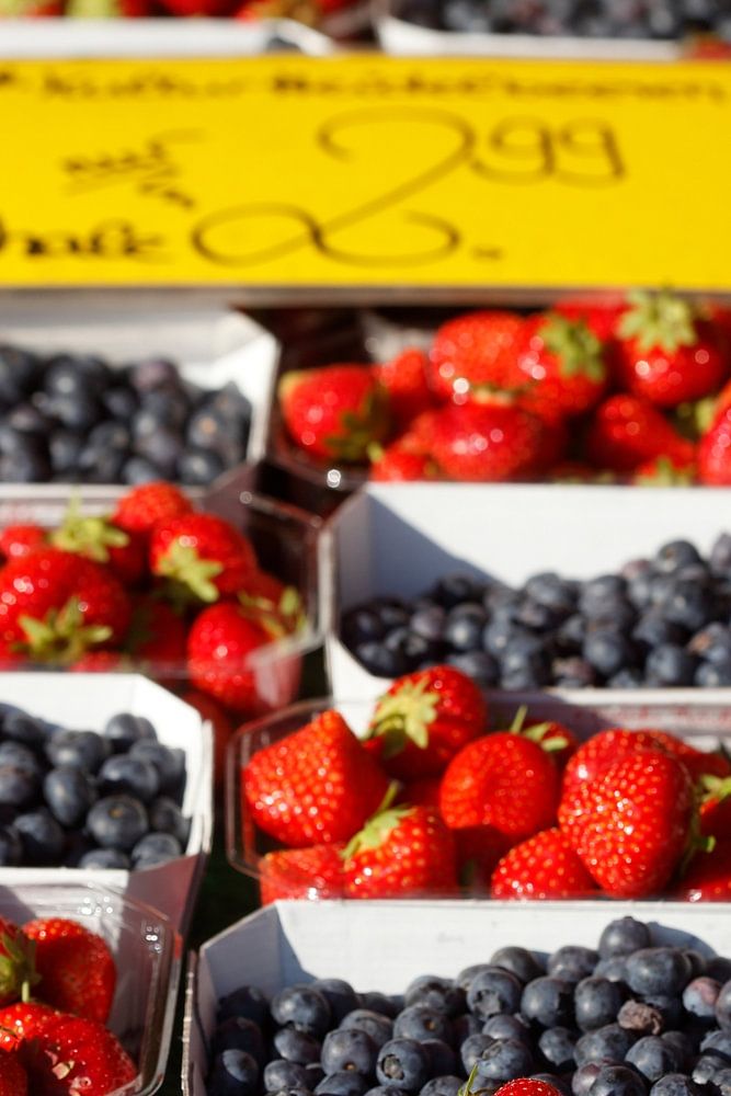 Fresh strawberries and blueberries in hulls by Torsten Krüger
