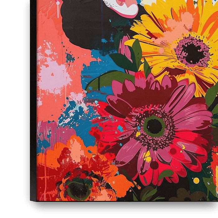 This bold interpretation of a Frida portrait combines the raw expression of street art with the vibrant aesthetic of pop art. With bold brushstrokes and rich splashes of colour, the artist is presented in a modern light, surrounded by a vibrant floral background reminiscent of her Mexican heritage. A powerful piece for the modern…