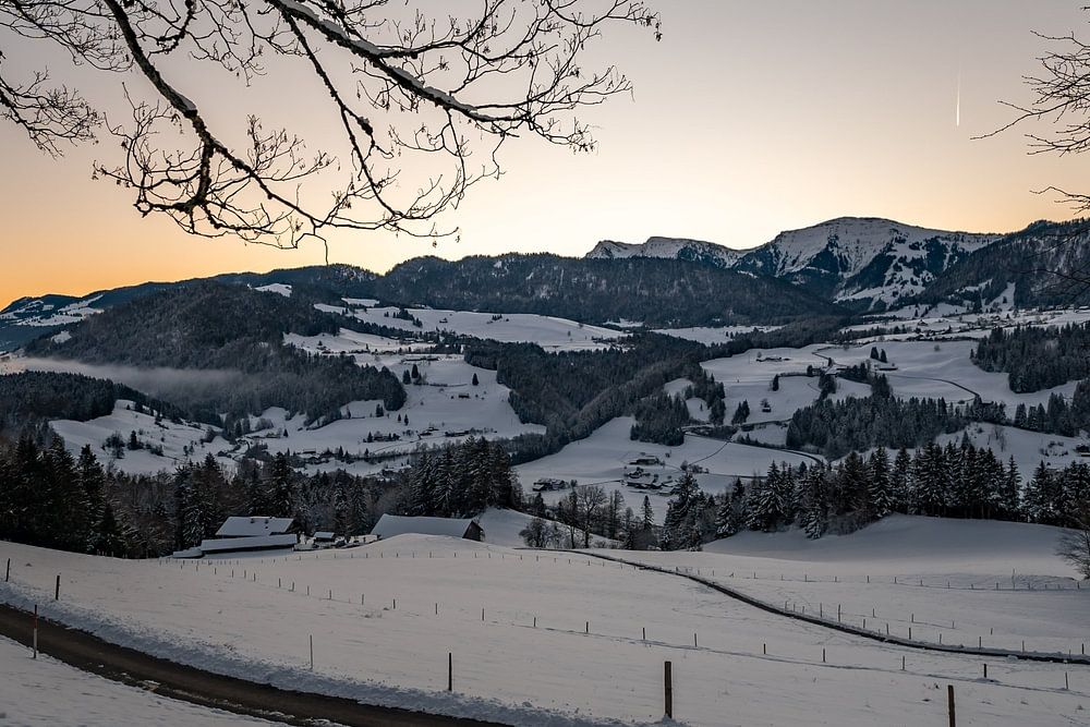 Frosty morning in Oberstaufen with a view of the Hochgrat