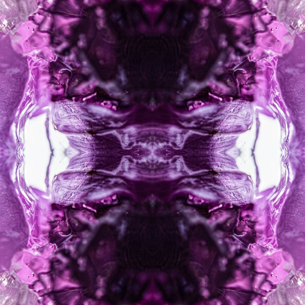 This work was created using a special technique with flowers. By rotating the picture, the patterns keep repeating and give a nice tension to the image.