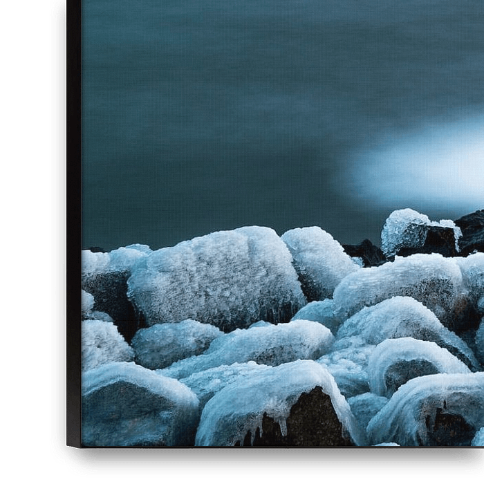 Waves are constantly smashing at the shore of the IJsselmeer and by doing so creating a blanket of ice. The rocks and pier are frozen in time.