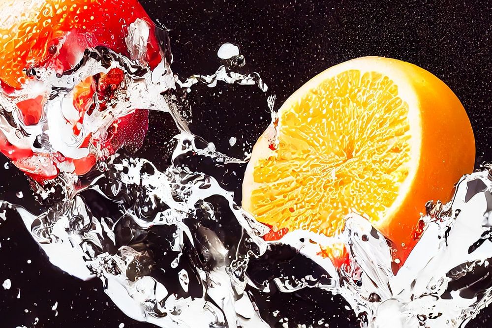 Fruits in a splash of water, Art illustration by Animaflora PicsStock