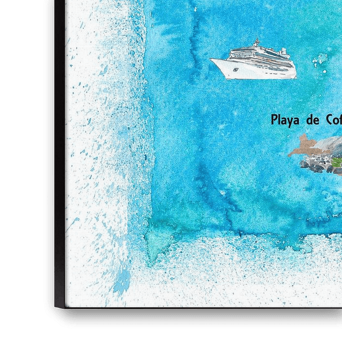 Buy this painting Fuerteventura Canarias Spain Illustrated map with landmarks and highlights by Markus Bleichner as a reproduction on canvas, ArtFrame, poster and wallpaper, printed on demand in high quality.