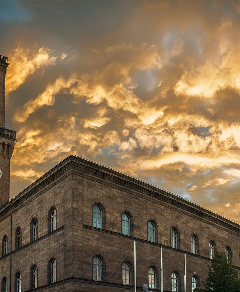 Buy the photo Fürth City Hall Fire Sky by Faszination Fürth on canvas, ArtFrame, poster and wallpaper, printed on demand in high quality.