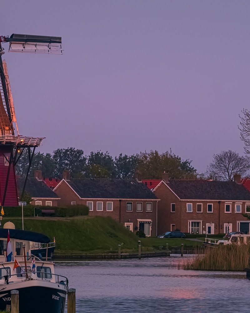 Full moon at corn mill 'De Hoop' in Dokkum in northern Friesland. De Hoop is an octagonal stage mill and was built in 1849, the mill was originally also equipped as a hulling mill. De Hoop' is one of the biggest mills in Dongeradeel.