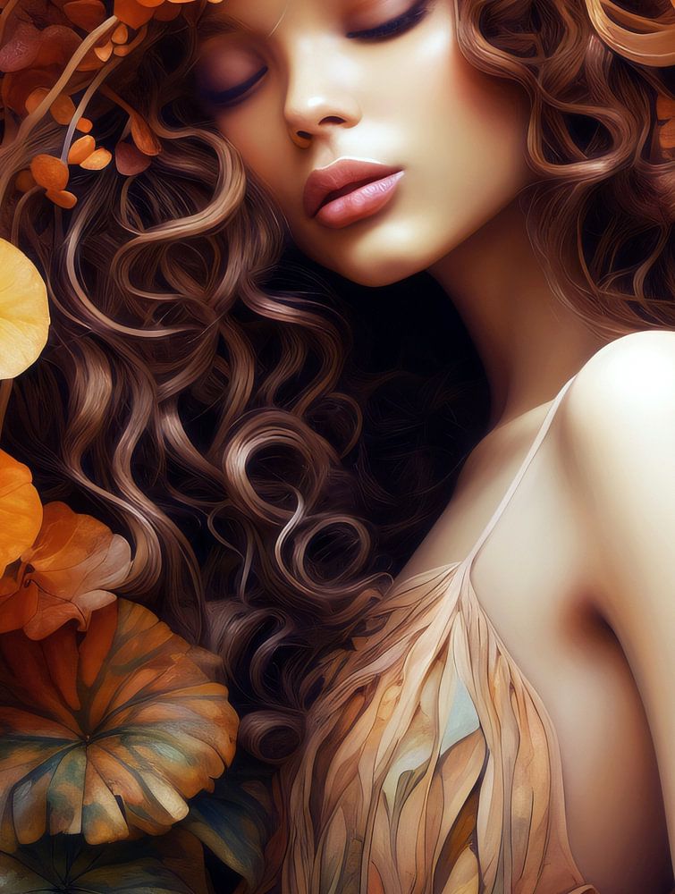 Fantasy portrait in warm earth tones showing a woman at one with nature.