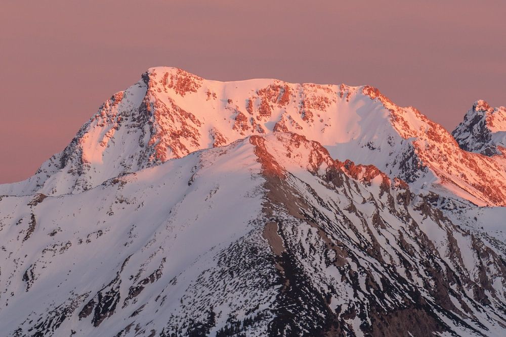Gaishorn and Rauhorn at sunset at alpenglow