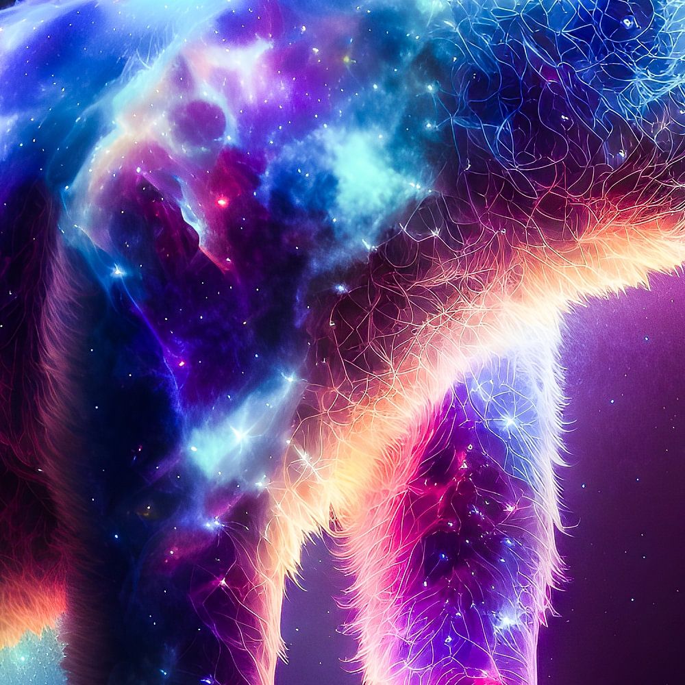A polar bear whose fur reflects the galaxy from the background. The somewhat different eye-catcher for your picture wall.