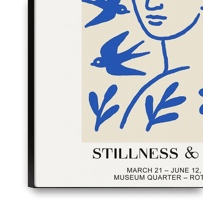 Your chosen art on canvas, stretched in an aluminum frame. Quick and easy to change for a fresh look and exactly as you want it.