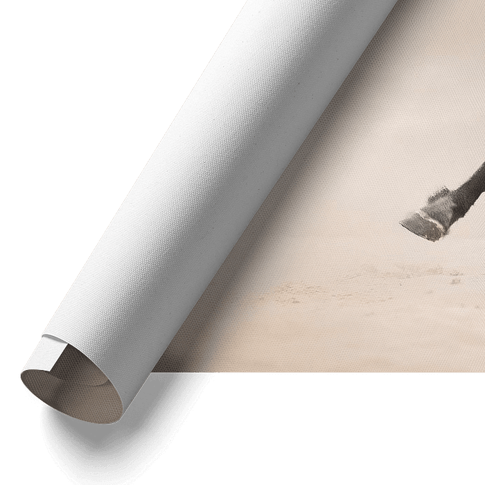 This imposing Friesian stallion in full gallop exudes power, elegance and freedom. The Friesian is one of the most majestic horse breeds, known for its shiny black coat, long wavy mane and powerful build. During this photo shoot on the sandy plain, everything came together perfectly: the energy of the galloping horse, the windblown sand…
