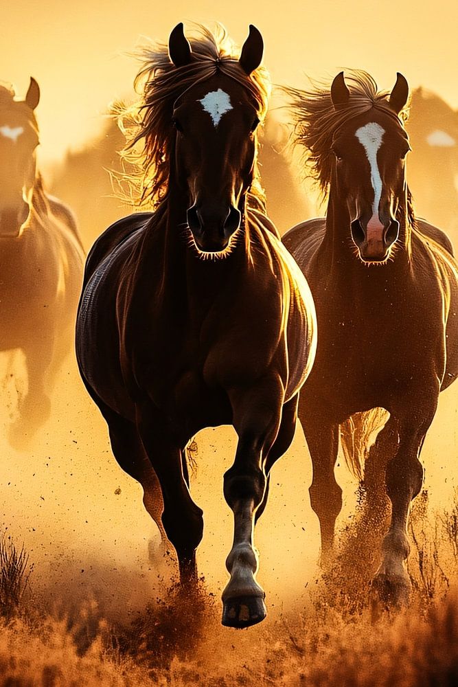 This beautiful design shows a group of horses galloping through a landscape full of power and energy, enveloped in a warm glow of the setting sun. The details of their manes and the movement of the fabric emphasise the dynamism and freedom of nature. Perfect as an impressive work of art for any room, this piece exudes both power and tranquillity. The combination of realistic details and warm colours makes it a unique addition to any interior, whether modern or classic.