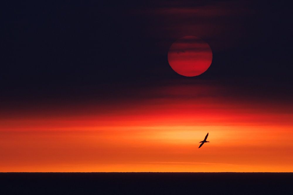 During the photo trip we were privileged to take to Helgoland, we were lucky with a beautiful sunset. I waited a long time for a Gannet to fly in front of the sun's light right under the sun.