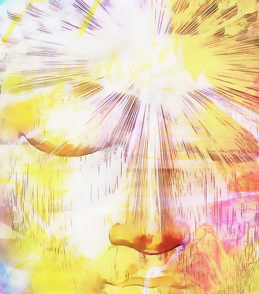 Gate Gate Paragate Parasamgate Bodhi Svaha is a mantra from the Heart Sutra that speaks of the perfection of wisdom. The image is a digital painting with the mantra superimposed.