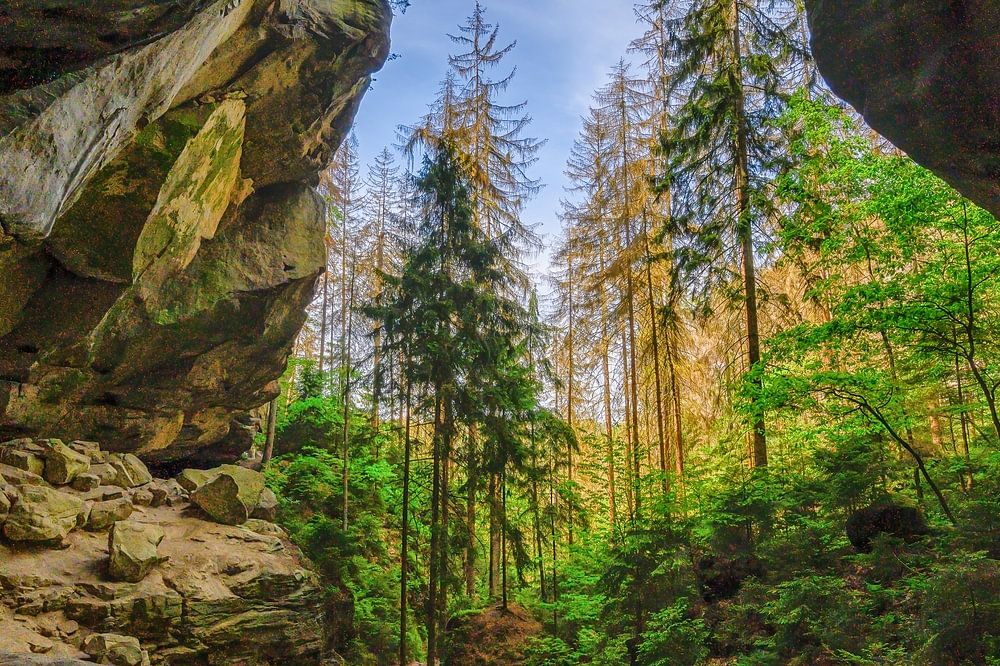 Beautiful view from the Gautsch Cave, located in Sachsischen Schweiz (south-east of Dresden).