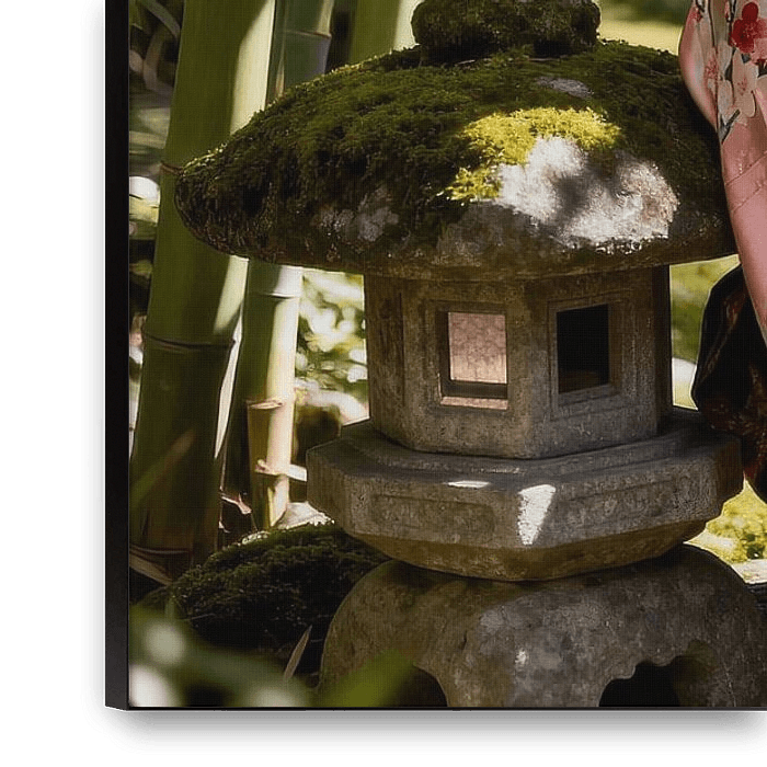 Geisha in japanese garden smoking a cigar absurd humour