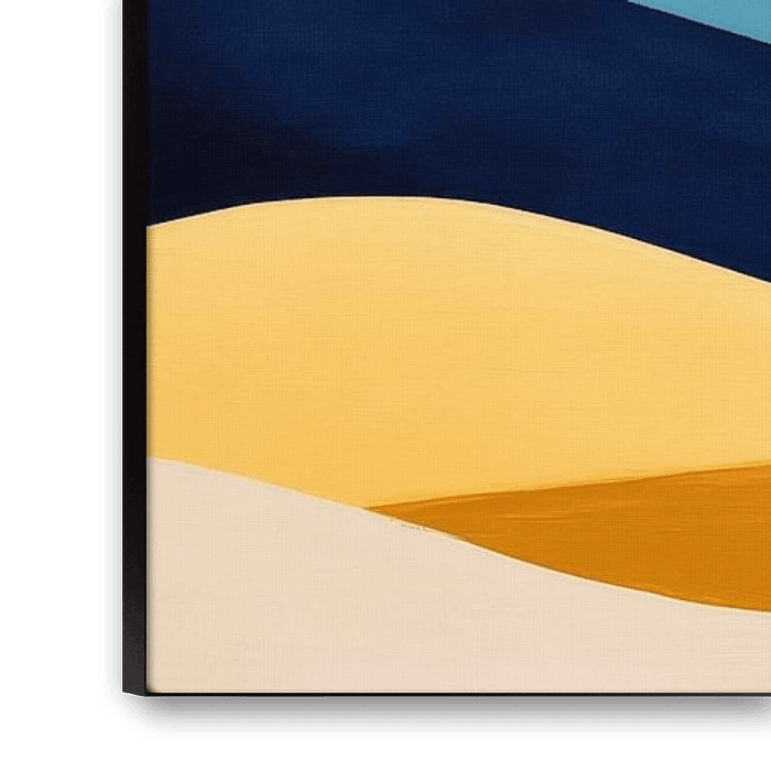 Gentle waves of beige, blue and soft grey tones lend the scene a calming atmosphere. The harmonious composition evokes a feeling of space and freedom, ideal for a bedroom or a cosy living room where it can radiate relaxation and inspiration. This work of art invites you to dream and linger.
