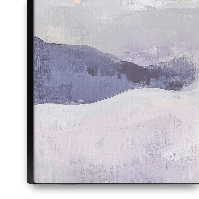 Gentle hills in soft shades of purple and grey lend the room a calming atmosphere. The harmonious choice of colours and abstract style create a serene mood, ideal for bedrooms or a relaxing living room. This work of art invites you to leave the stress of everyday life behind and let your mind wander.