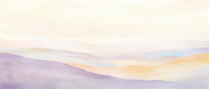Soft colour tones blend harmoniously and create a dreamlike atmosphere. The soft transitions between the purple and golden nuances draw the viewer into a world of calm and serenity. Perfect for the bedroom to create a relaxing oasis of calm that invites you to dream.