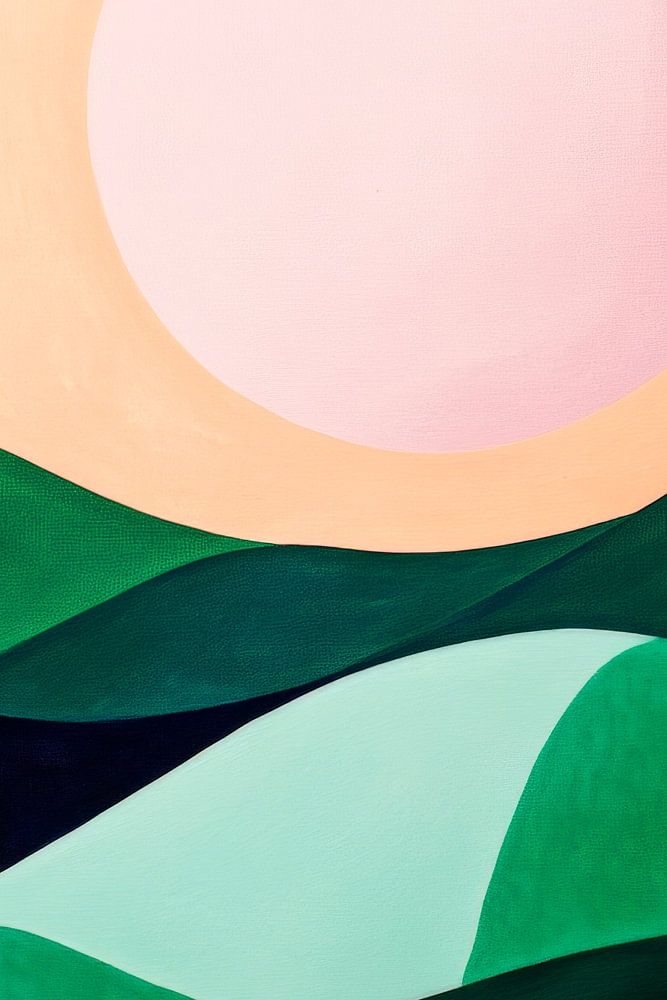 Gentle, green hills embrace a calm, large sunrise that fills the room with a warm, inviting light. The harmonious colour palette creates a sense of calm and refreshment. Perfect for the bedroom, it invites you to sit back and immerse yourself in a world of relaxation and harmony.