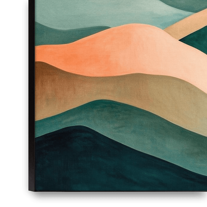 Undulating hills in soft earthy tones vibrate harmoniously and conjure up a calming atmosphere. The curved shapes invite you to dream and create a feeling of space and serenity. This work of art is an ideal addition to a living room or bedroom, transforming the room into an oasis of calm and natural charm.