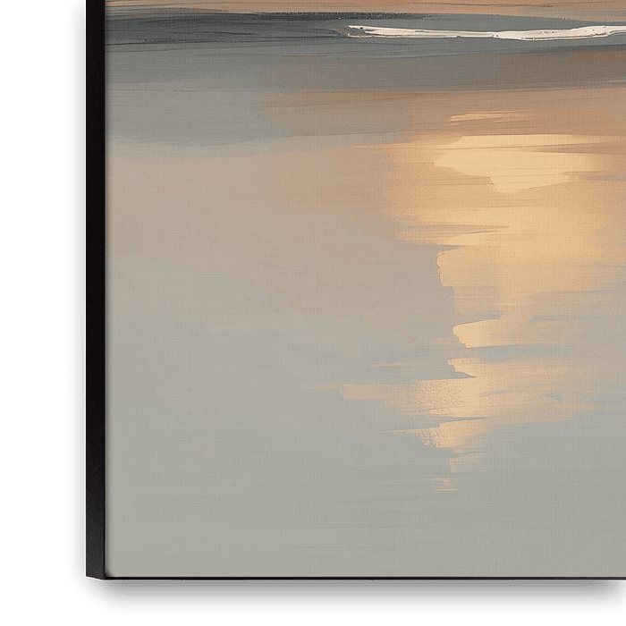 A minimalist seascape in warm pastel colours. The soft brushstrokes and quiet reflection create a feeling of peace and lightness - perfect for minimalist rooms.