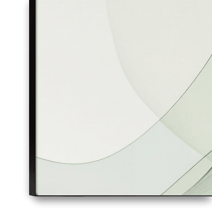 Gentle, flowing lines dance harmoniously with each other and create an almost hypnotic movement. The delicate, transparent curves in soft shades of green seem to catch the light and lend the entire picture an airy lightness. The simple elegance and organic shapes express calm and creativity - an artistic interplay between space and time.
