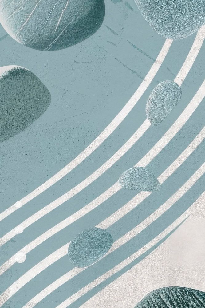 Gentle lines meander through a harmonious composition, while round stones in different shades rest on a calm surface. The soft blue and grey tones lend the picture a meditative calm, as if nature itself is singing a quiet song of serenity. An interplay of form and colour that invites you to linger.