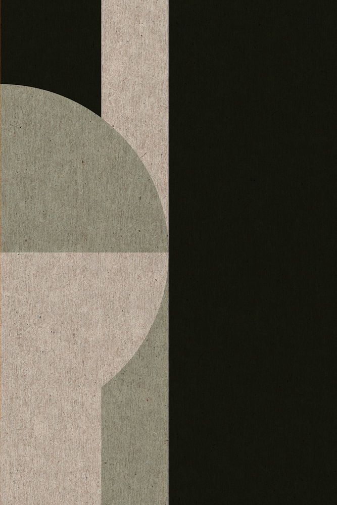 This modern abstract artwork features basic shapes and clean lines in a retro-inspired style. The color palette of green, brown, beige, yellow, and black creates a contemporary living style, perfect for any room. The minimalistic design incorporates elements of abstract expressionism and architecture to create a unique piece of wall art.