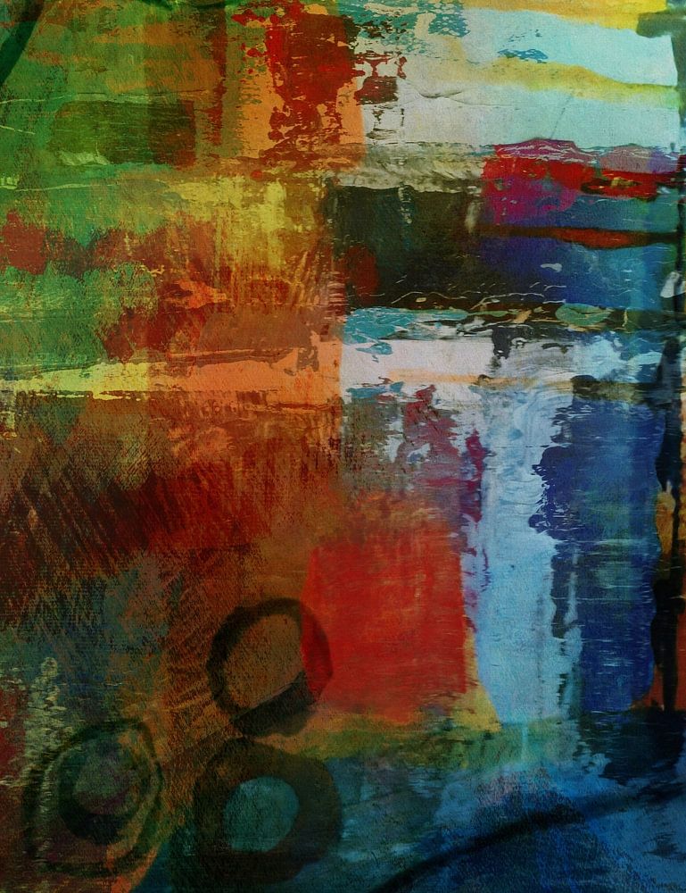 Acrylic painting having received a small digital treatment thereafter.