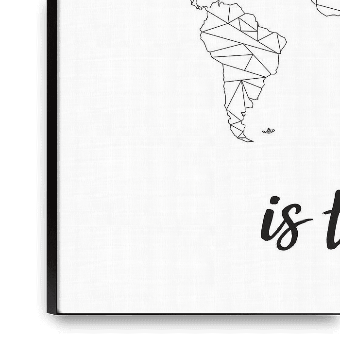 Geometric World Map with Quote 'To travel is to live' in Black on White.