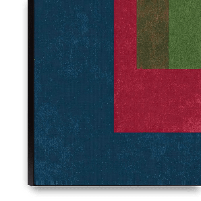 This minimalist artwork is based on a clear arrangement of rectangular colour fields. The composition uses bold tones such as red, yellow, green and dark blue, some of which overlap. A subtle grain gives the graphic a tactile paper texture and depth. The design is based on the principles of Bauhaus and modern colour field painting. The…