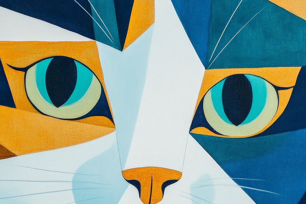 A fascinating interplay of colours and geometric shapes casts a spell over the viewer. The large, expressive eyes seem to tell stories, while the bold cat face shines in a stylish design. This work of art brings life and creativity to any living room and is guaranteed to be an eye-catcher and conversation starter.