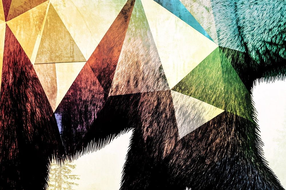 This stunning design combines the power of nature with modern art. The image depicts a majestic bear with a unique geometric pattern in rich, vibrant colours. Perfect for lovers of animals and abstract art, this piece adds a dynamic and energetic atmosphere to any room. Ideal for a living room or office, this design grabs immediate attention and is a real conversation starter. The combination of organic and geometric shapes makes it a versatile choice that fits into both modern and eclectic interiors.
