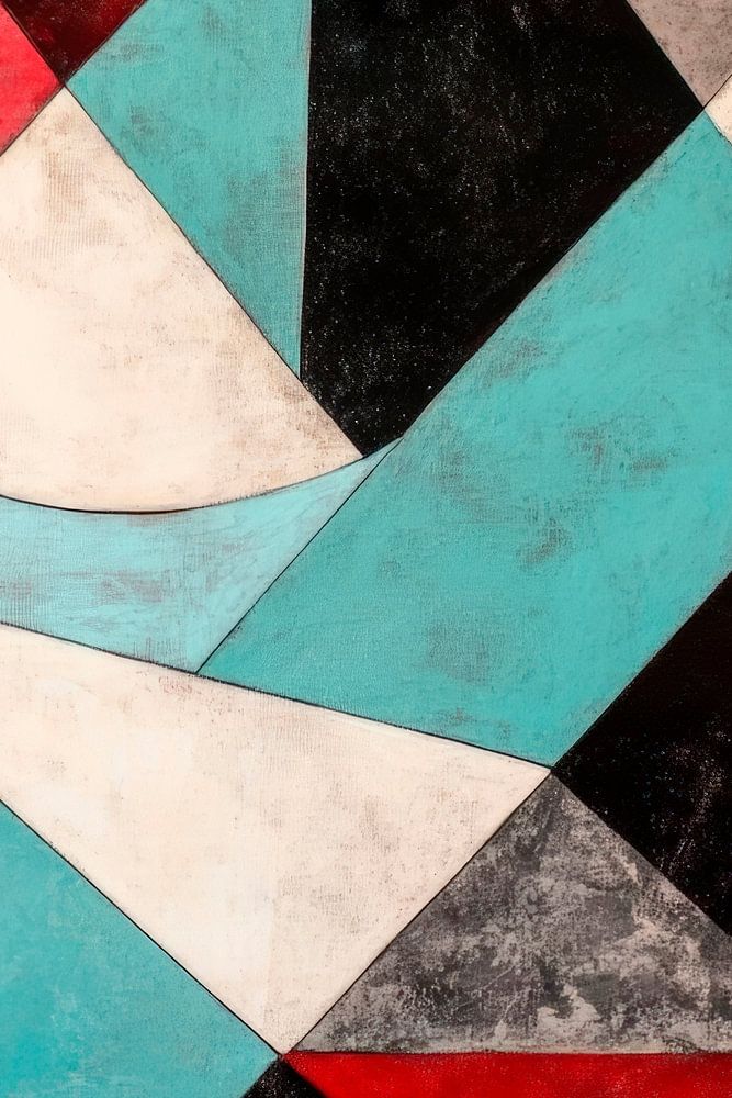 A dynamic composition of bold colour and geometric shapes that magically attracts the eye: bright red, bold black and soft blue dance harmoniously together. Perfect for a modern living room, this work of art adds creative energy to any room and inspires thought and wonder.