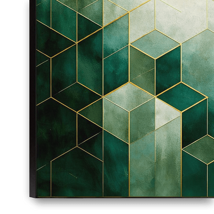 This captivating abstract artwork captivates with its hypnotic geometry and fascinating colour palette reminiscent of the depths of the sea. It presents a complex pattern of interlocking hexagon and cube shapes that create an illusion of depth and dimension. The fine lines that form the grid shimmer subtly, lending the design an elegant…