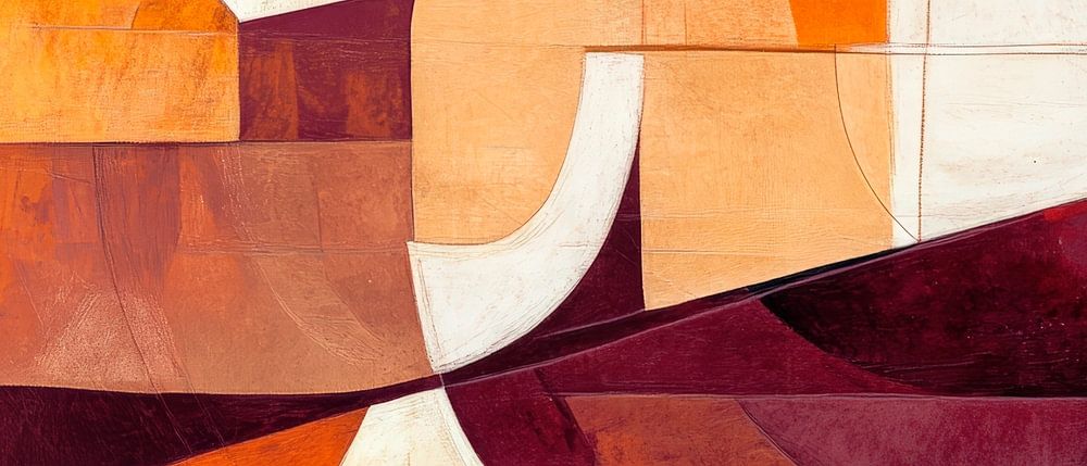 A harmonious interplay of soft earthy tones and geometric shapes unfolds in this composition. The warm reds and soft beige tones create an inviting atmosphere that radiates both creativity and cosiness. This work of art is perfect for the living room to create an appealing focal point.