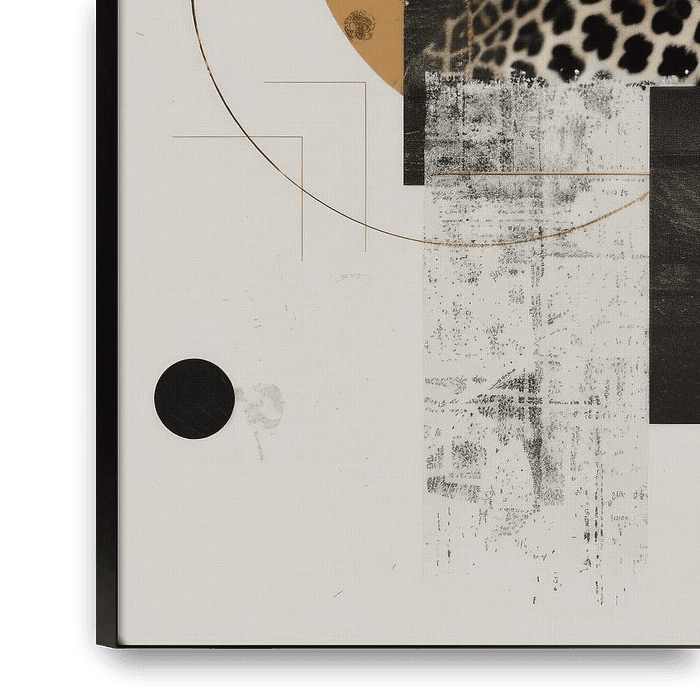 This fascinating work of art combines the majestic beauty of a leopard with abstract geometric shapes. The harmonious combination of black and white and golden accents gives the picture an elegant yet dynamic look. Ideal for lovers of wildlife and modern art who are looking for an eye-catching statement piece for their home. The precise…