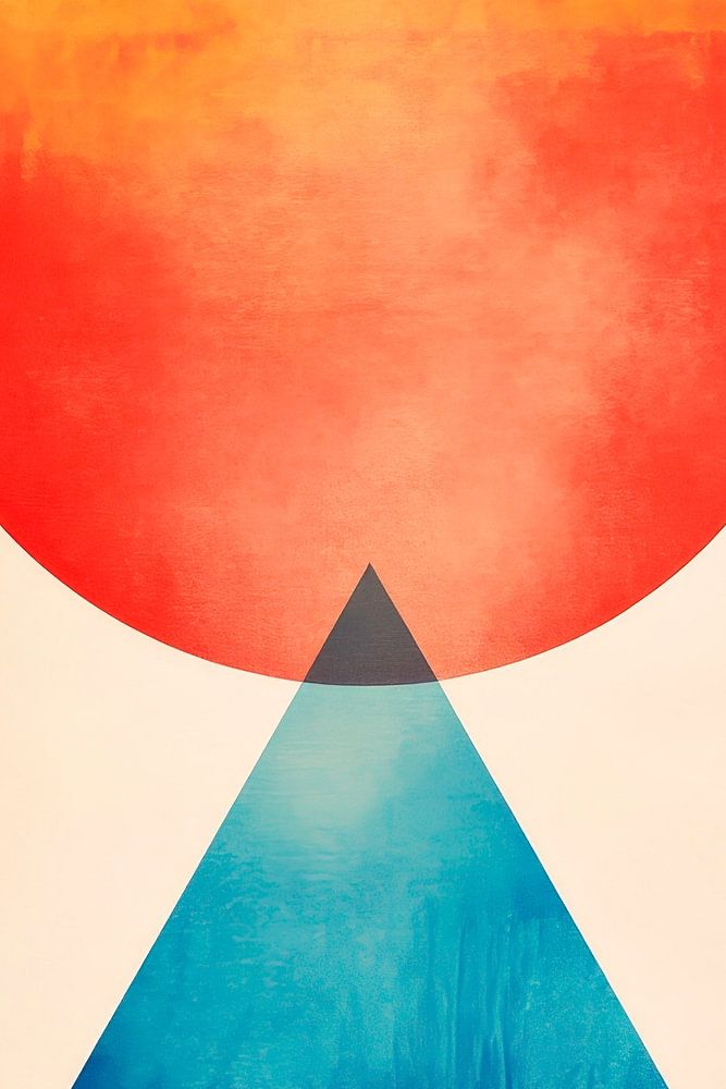 In warm colour tones, the combination of a luminous sun circle and a striking geometric shape radiates energy and harmony. The gentle transitions between orange and blue create a calming atmosphere. Perfect for the living room to combine cosiness and artistic flair and inspire conversation.