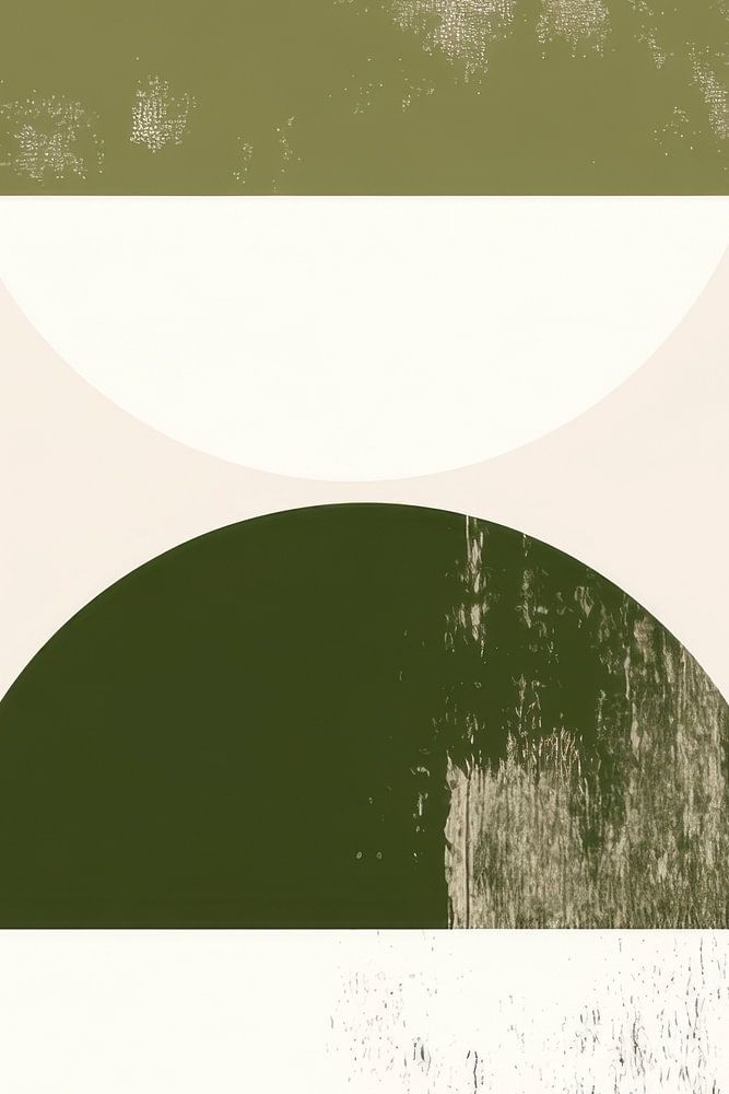 Two large circles unfold in soft green tones, almost like natural emblems. Their irregular texture lends the picture an exciting depth, while the delicate cream harmoniously combines the top and bottom. Together they create a sense of balance and inspiring calm, as if nature itself were leaving its mark here.