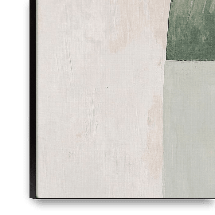 A harmonious interplay of soft green tones and clear shapes unfolds, while curved arches and geometric surfaces create an inviting atmosphere. The subtle textures and gentle contrast create a calming elegance and invite the viewer to experience the tranquillity and balance of this minimalist work of art.