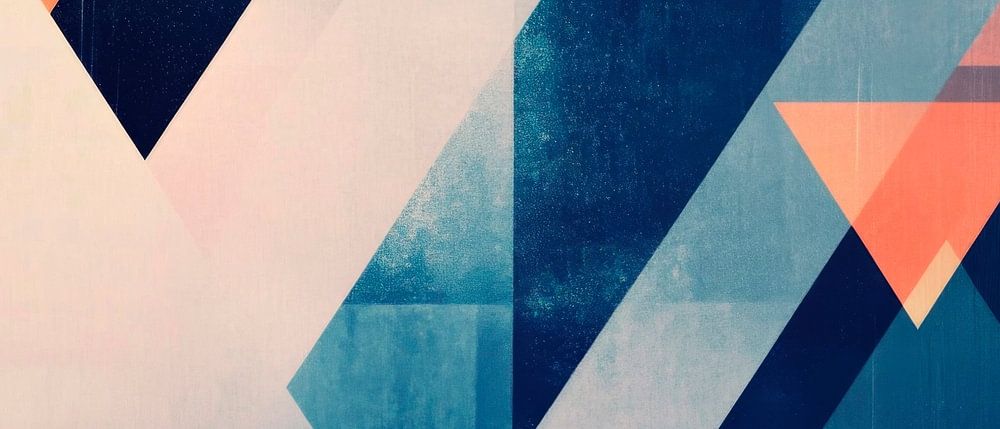 Geometric shapes dance in harmonious shades of blue, while warm accents glow in orange. This artful arrangement of clean lines and vibrant triangles creates a modern, dynamic atmosphere. Ideal for a creative office, it inspires new ideas and adds a contemporary touch to any room.