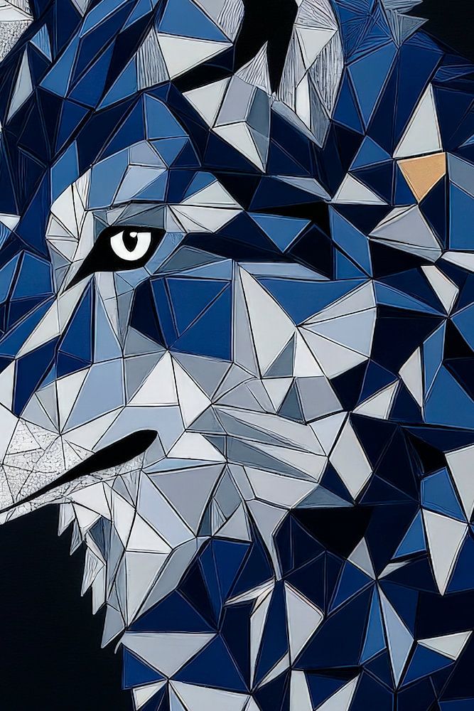 Majestic and mysterious, the geometrically designed wolf image stands out in deep shades of blue and grey, its sharp eyes radiating wisdom and determination. The dynamic design language adds a modern accent to any room, ideal for the living room or a creative office, where it provides conversation and inspiration.