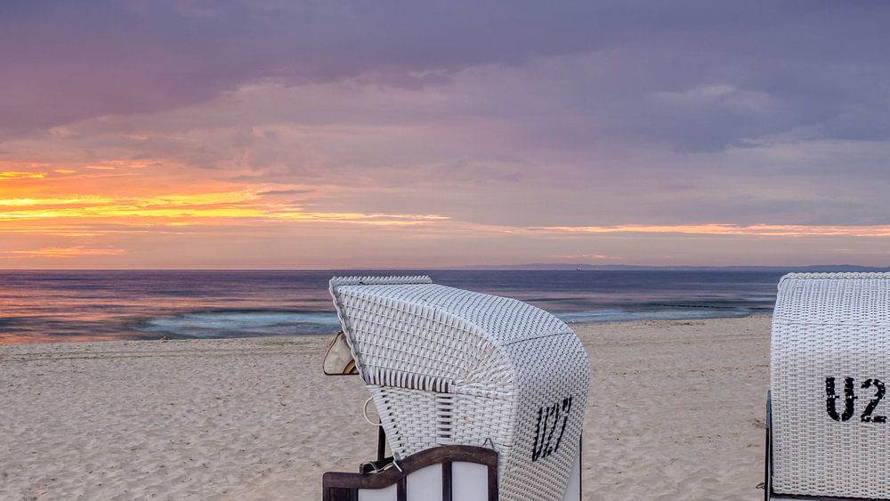 Along the North German coast, especially on the Baltic coast, it is customary to use these traditional beach chairs when going to the beach. These so-called "Strandkörben" have been popular since the end of the 19th century. These "beach baskets" were photographed during the sunrise in Bansin on the island of Usedom.