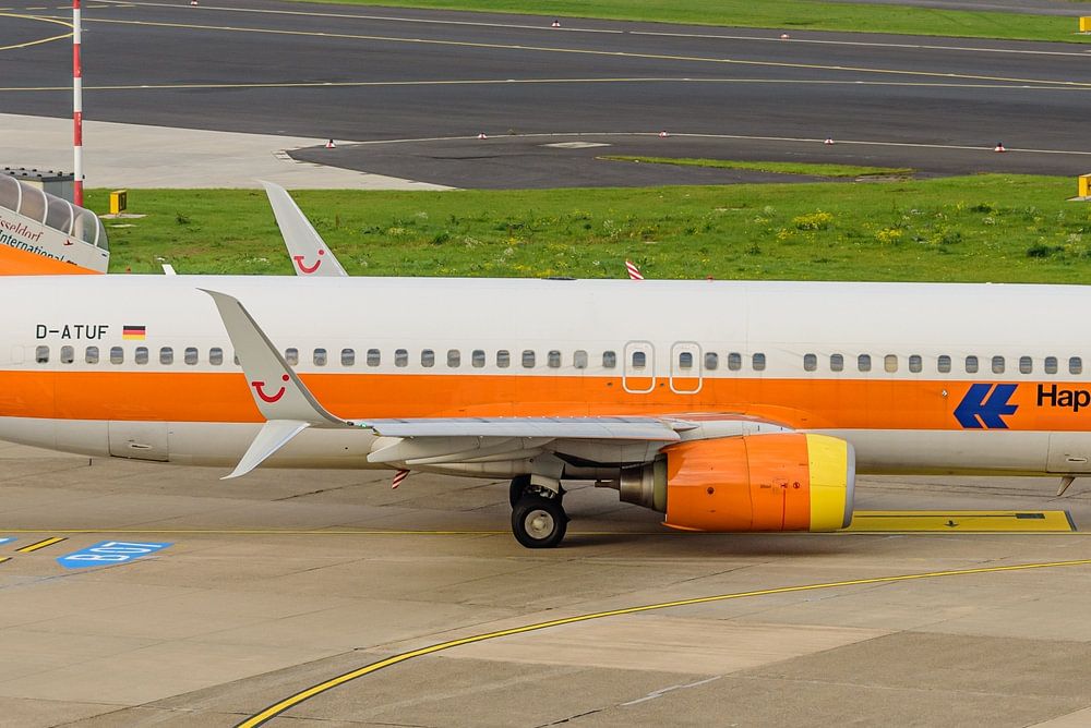 German airline TUI fly has added colourful liveries to several aircraft in its fleet over the years. So too is this Boeing 737 which features the Hapag Lloyd livery.