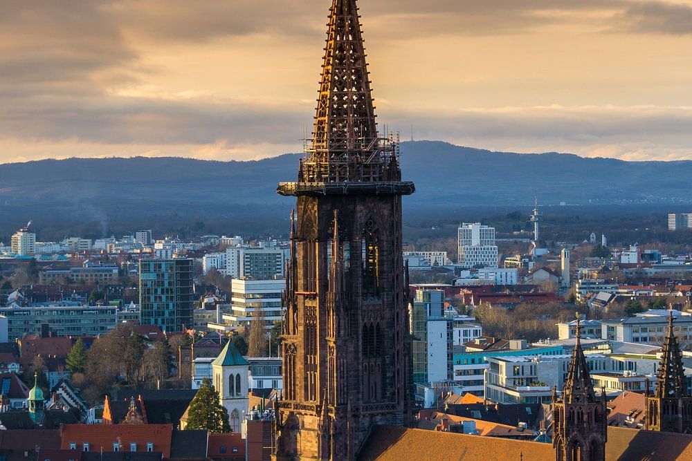 About "Germany, Winter sunset over Freiburg im Breisgau"