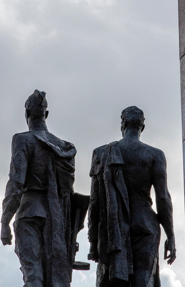 Buy this modern artwork Geroicheskim Zashchitnikam Leningrada monument withStand statues of Russian young worker and young R by WorldWidePhotoWeb on canvas, ArtFrame, poster and wallpaper, printed on demand in high quality.