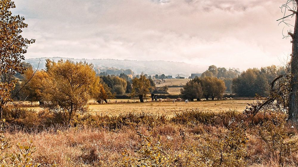 Meadows with Cows in the Geul Valley near Cottessen near the Dutch-Belgian border where the river Geul enters the Netherlands.
