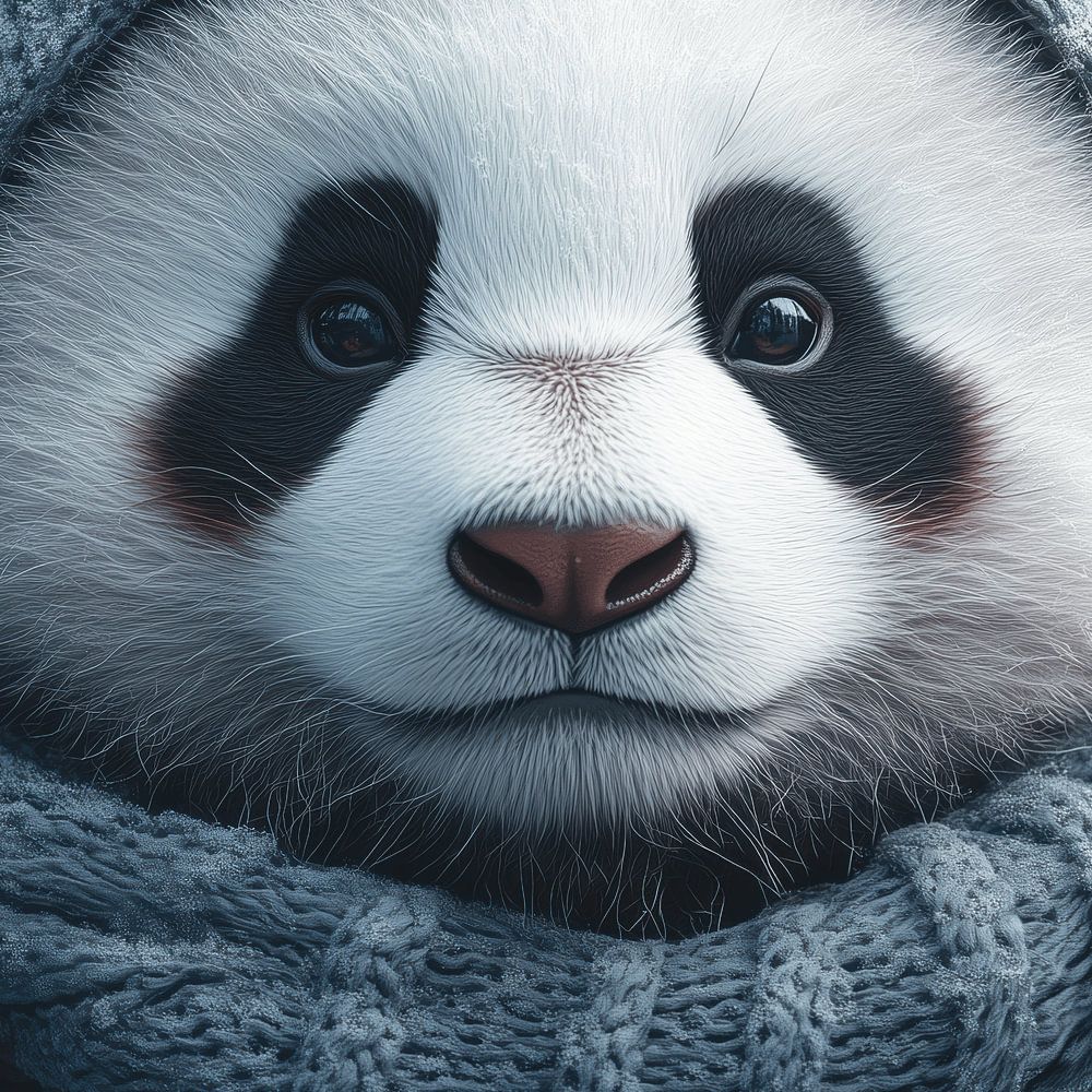 Buy this digital art artwork Giant panda dressed for winter by Ton Kuijpers as a reproduction on canvas, ArtFrame, poster and wallpaper, printed on demand in high quality.