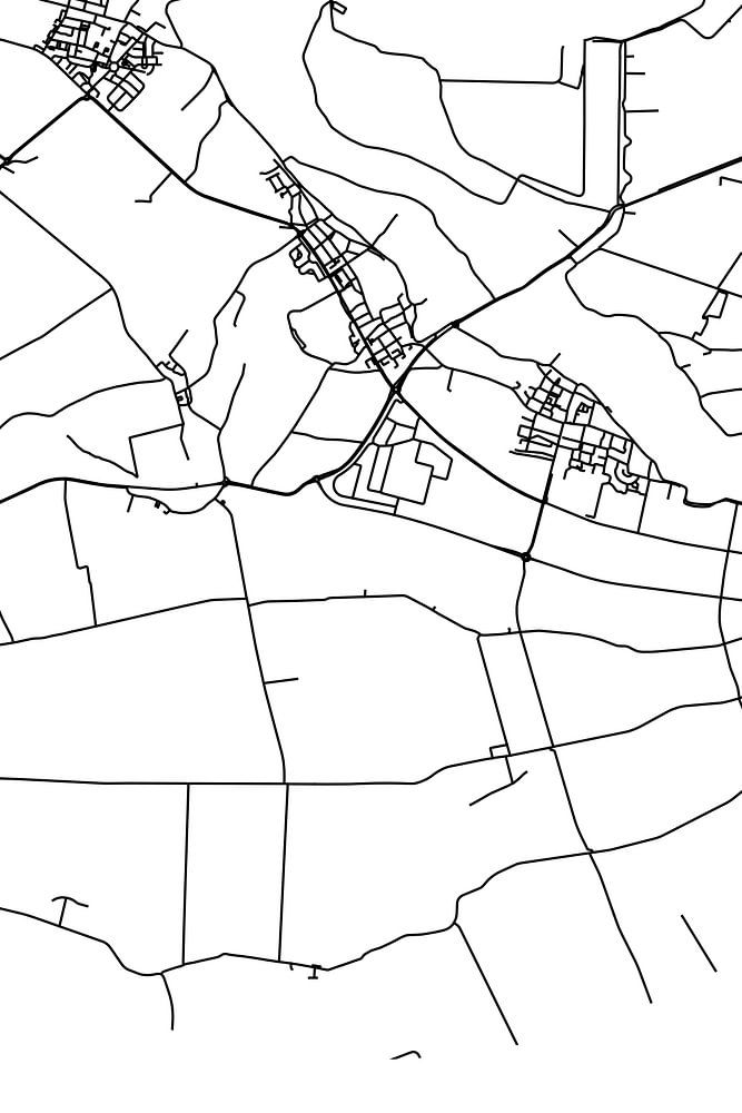 Black and white map, street map or street plan of Giessen. Giessen is located in the municipality of Altena, province of North Brabant. On the city map all public roads in Giessen are included. Furthermore, the map is provided with the coordinates of the center of Giessen.